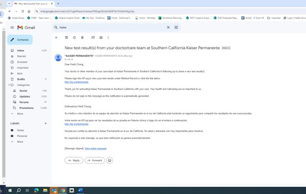 July 30 – CT report loaded into Kaiser’s online portal